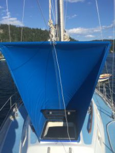 You might call this a red neck air conditioner, but it really helps increase the flow of air through the boat especially in light air conditions.
