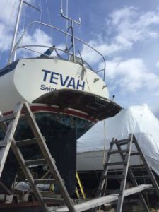 Reinstalled the Swim platform. Still have the central strut to add but it is great to have had the help to get this beast up into place.