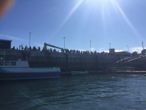 It was a treat to watch the lobster box run. This involves about a dozen empties lobster crates that are tied together and then end with an inflatable air mattress. The object is to run over the top of the boxes and then land on the mattress. Obviously the crates will not support any amount of weight so you must be flight of foot! We saw a couple of the under 12 kids make it.