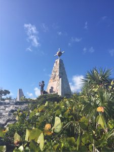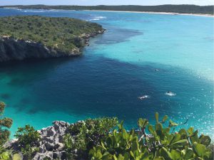 Val and I are treated to amazing hospitality during our days here at “The Yellow house” , including a day trip down the island to see various churches and buildings and land features. Toward the end we come to Deans Blue Hole. This is a geological phenomenon that is quite common here in the Bahamas but it happens to be the deepest one in the world. So much of the Bahama bank is only about 15 feet deep. The Blue hole is over 600 feet straight down. It is used for the worlds free diving competition. If you google Deans Blue Hole you will find lots of information. We climbed the cliff beside it to get a view from the top.